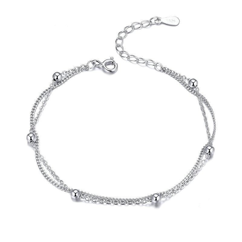 Pulsera de plata 925 con cuentas redondas de doble capa para mujer