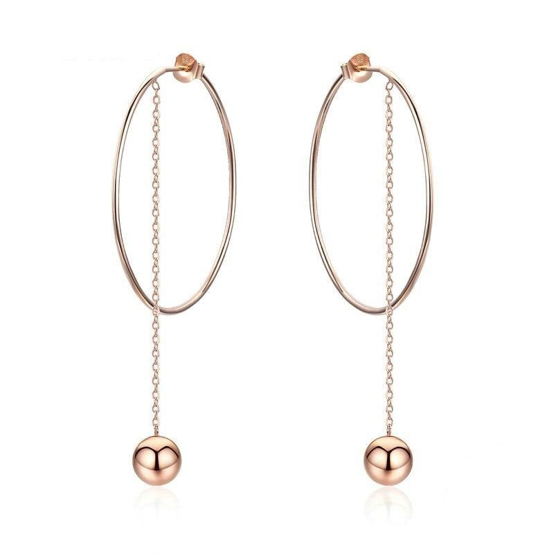 Pendientes colgantes de cadena larga y círculo grande de plata de ley 925