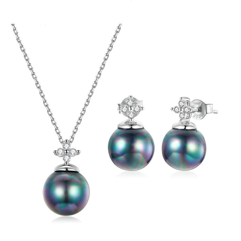 Collar y pendientes de perla negra en plata de ley 925
