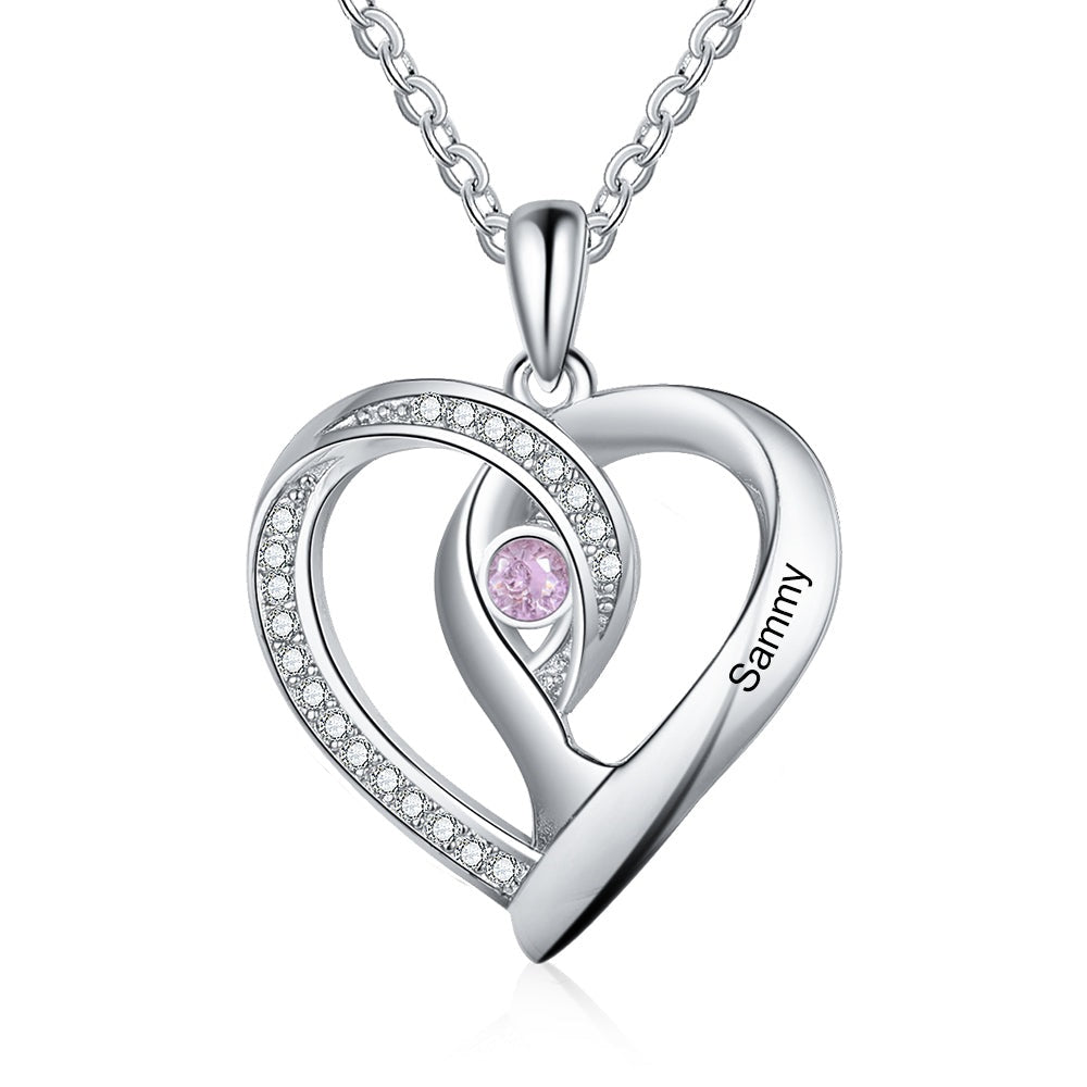 Collar personalizado con colgante de corazón de amor con piedra de nacimiento incrustada