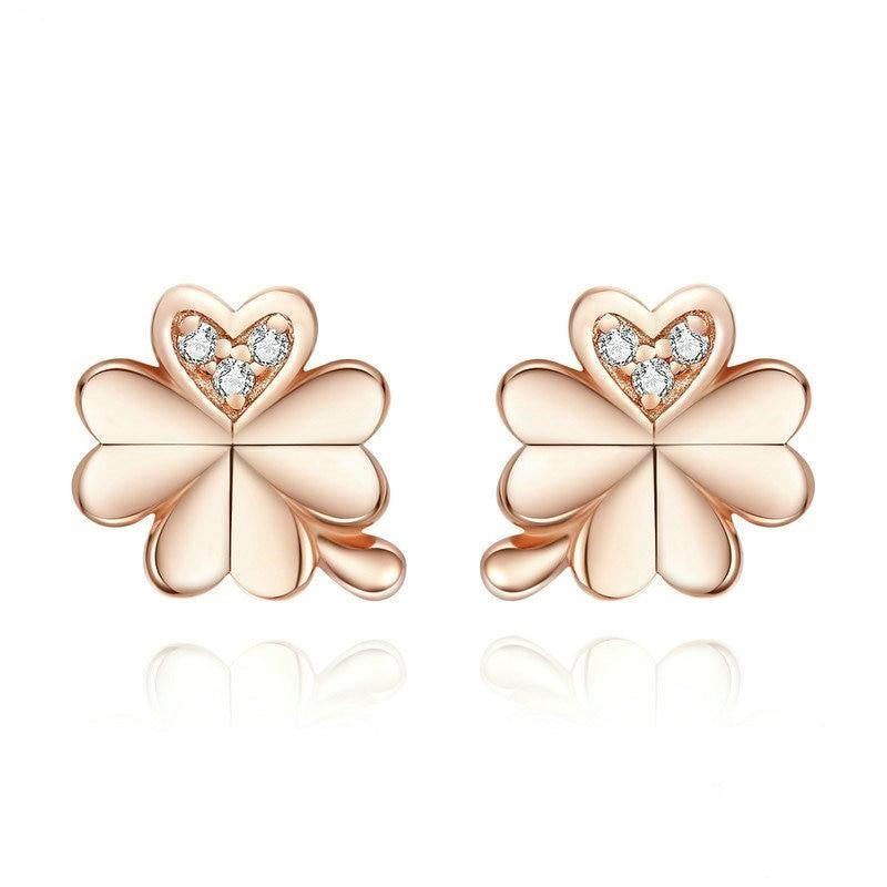 Pendientes de trébol de cuatro hojas en color oro rosa