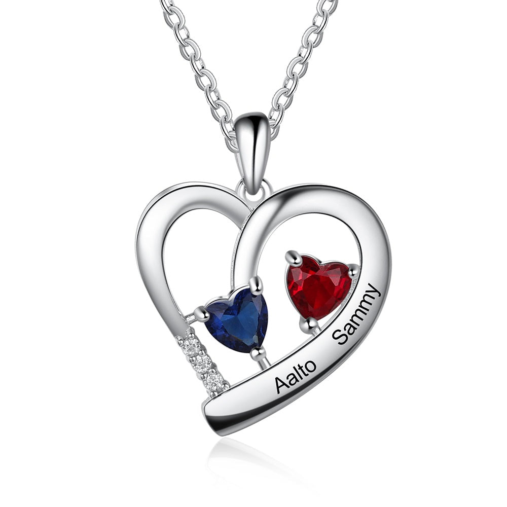 Collar de corazón con nombre y piedra de nacimiento grabada personalizada