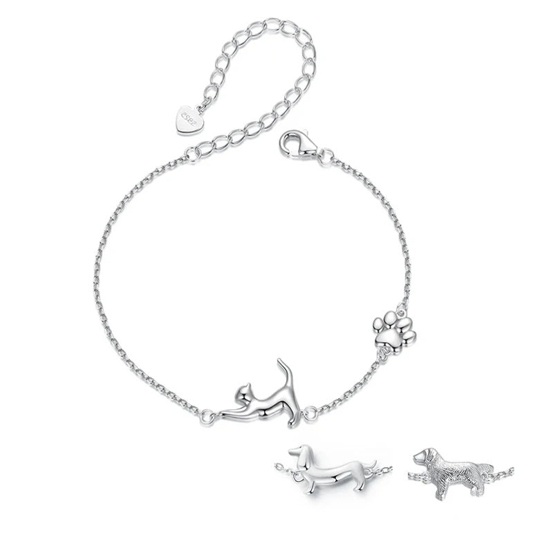 Pulsera de cadena con forma de perro y gato en plata de ley 925