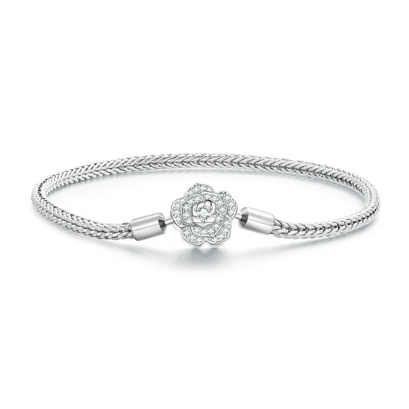Pulsera de plata de ley 925 con hebilla de rosa y circonita