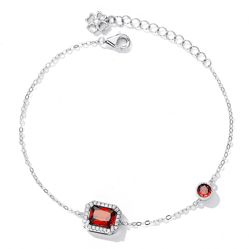 Pulsera de plata de ley 925 con circonitas y rubí francés