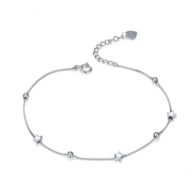 Pulsera de cuentas de estrella y corazón de plata de ley 925