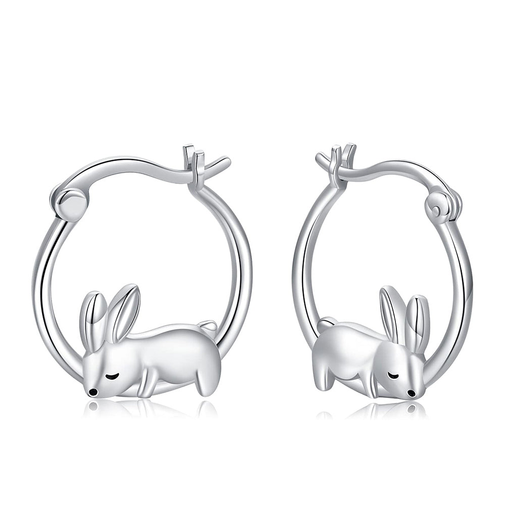 Pendientes de aro con forma de conejo bañados en plata