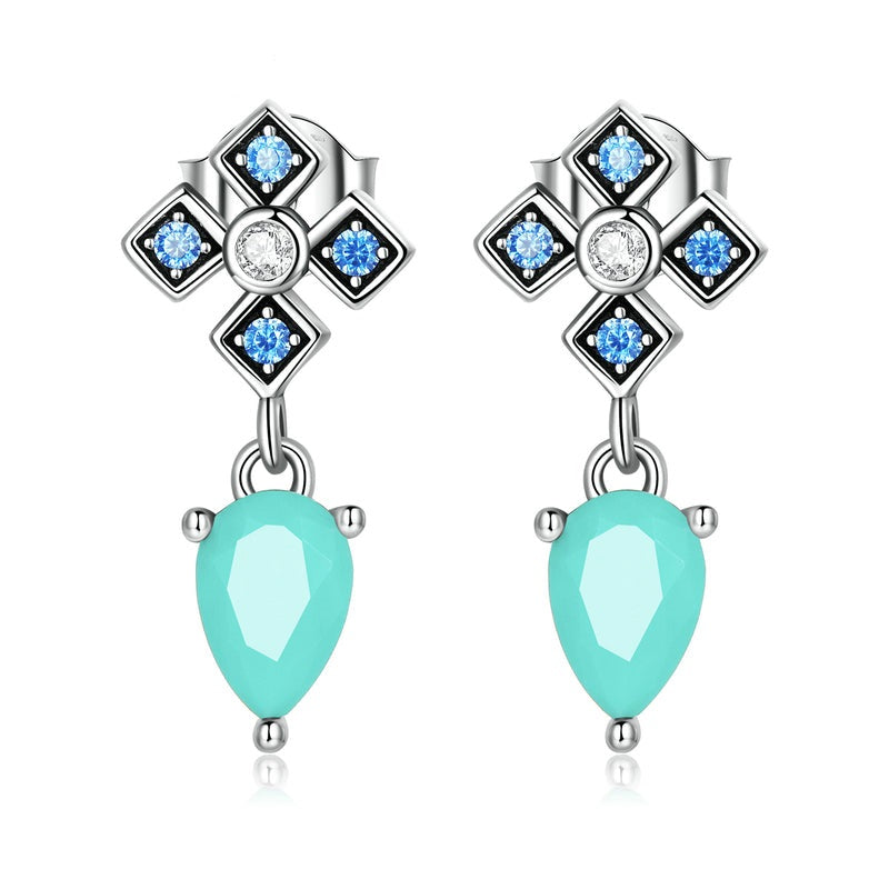 Pendientes de turquesa con diseño de cruz en plata de ley 925 y gota de agua