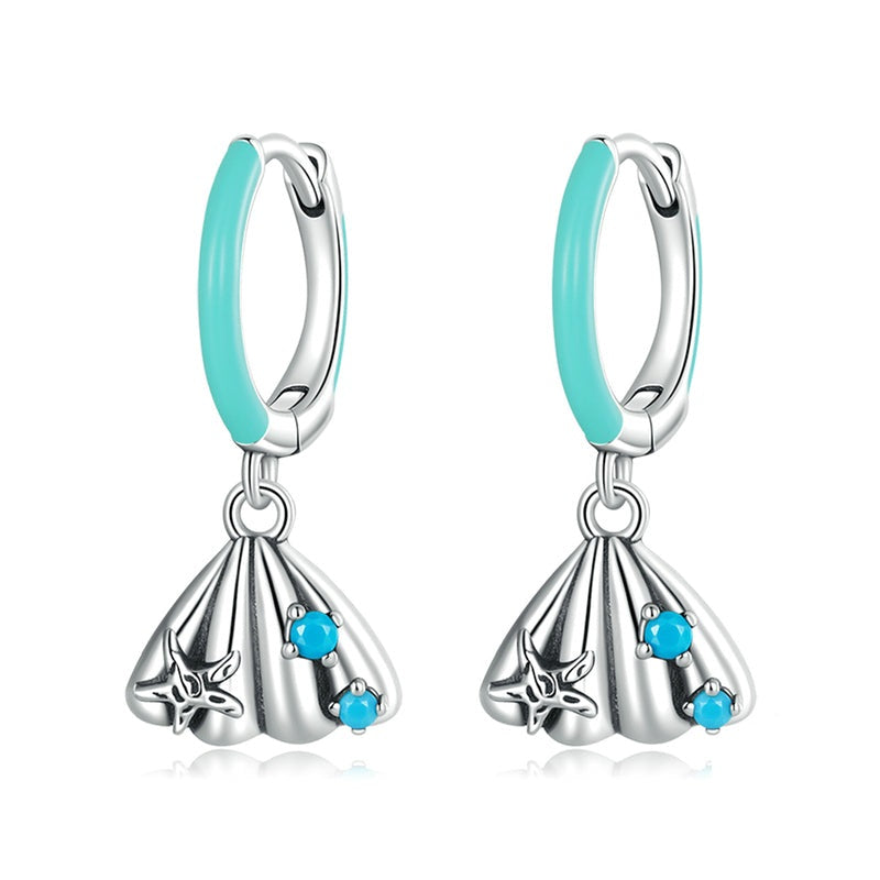 Pendientes colgantes de concha y estrella de mar en plata de ley 925