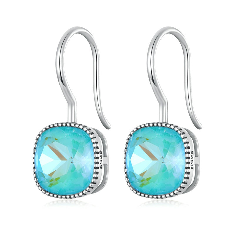 Pendientes de gancho fluorescentes color moca de plata de ley 925