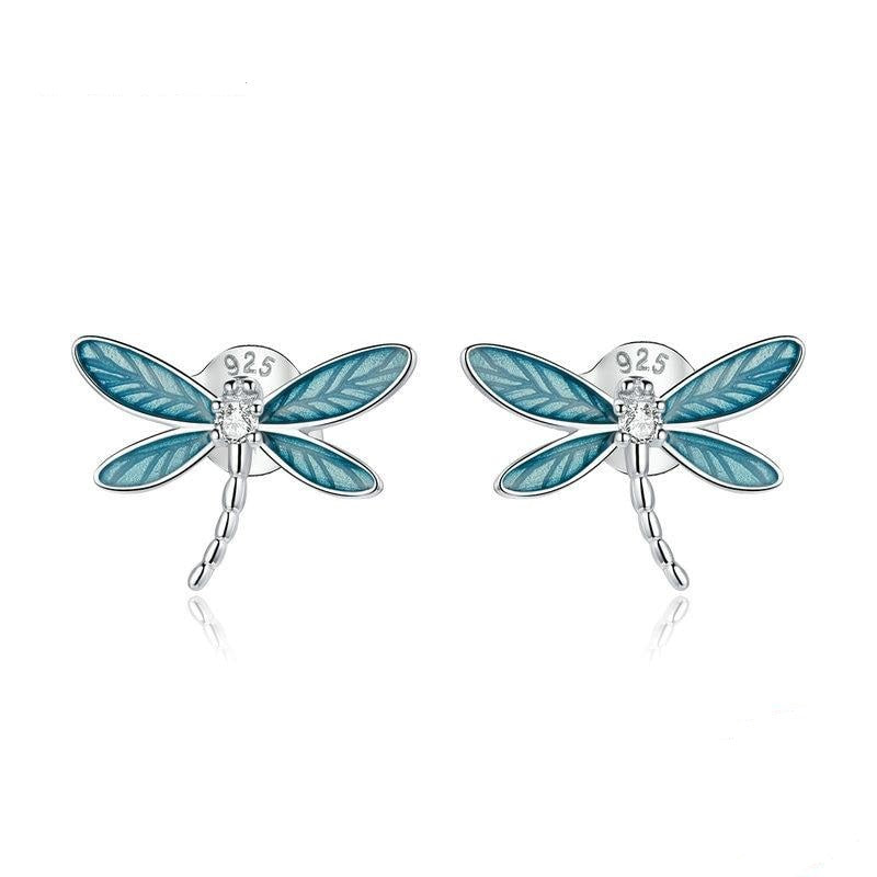 Pendientes de botón con forma de golondrina de primavera en plata de ley 925
