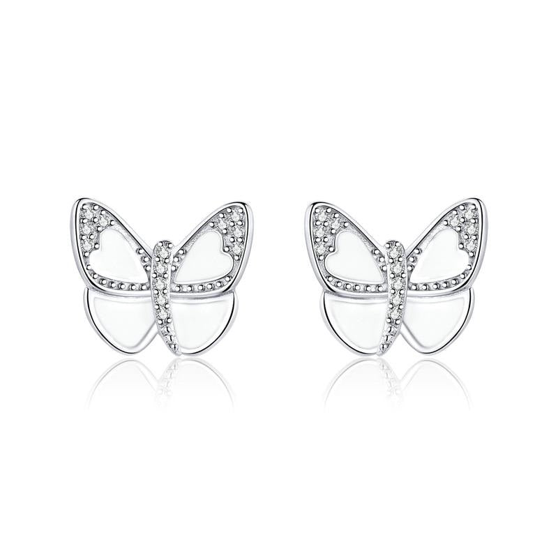 Pendientes de mariposa con esmalte blanco en plata de ley 925