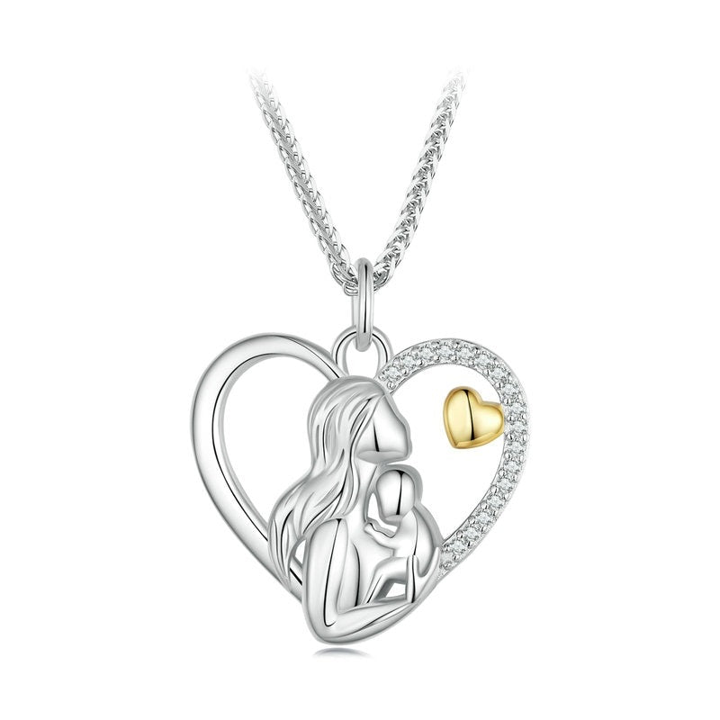 Collar con colgante de corazón de madre e hijo en plata de ley 925