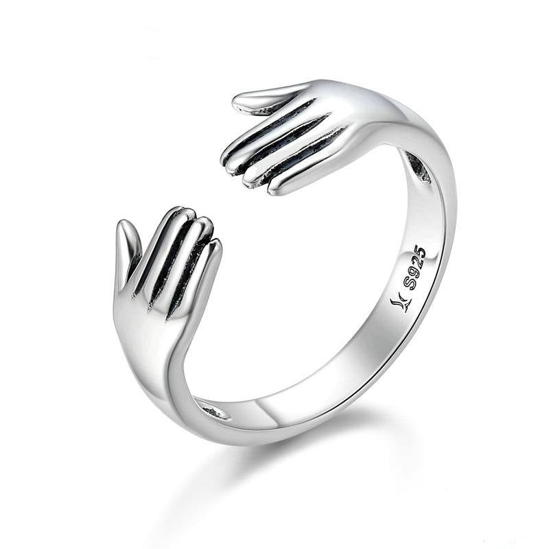 Anillo "Dame un abrazo" de doble capa de plata esterlina 925 genuina