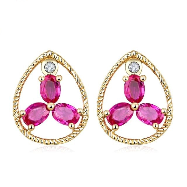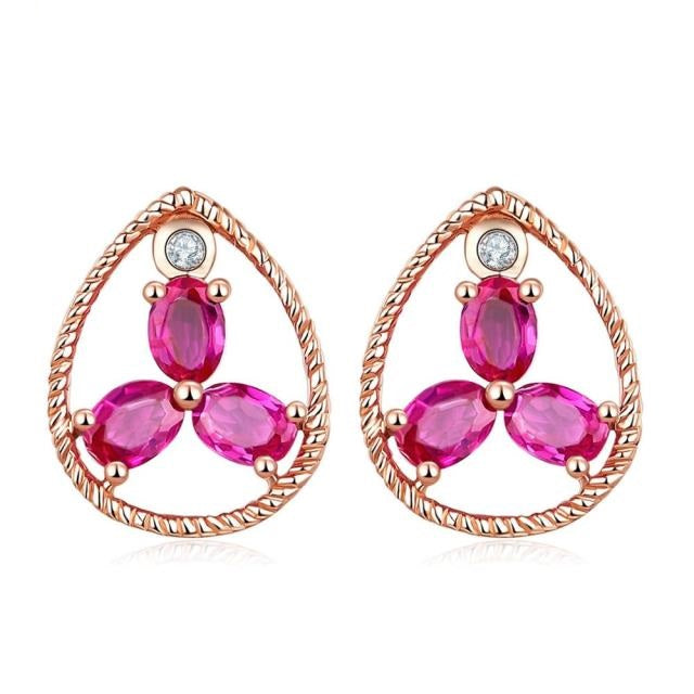Pendientes de oro rosa de 10 quilates con rubí natural y diamantes de piedras preciosas macizas