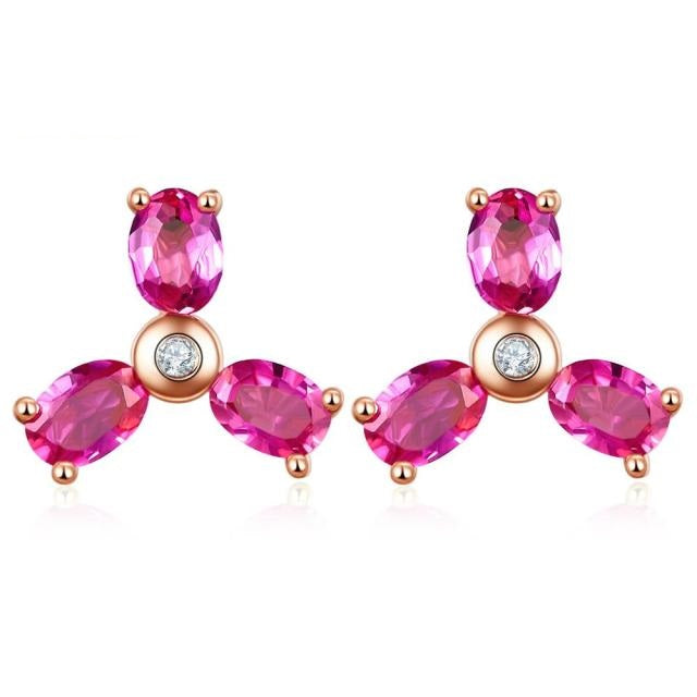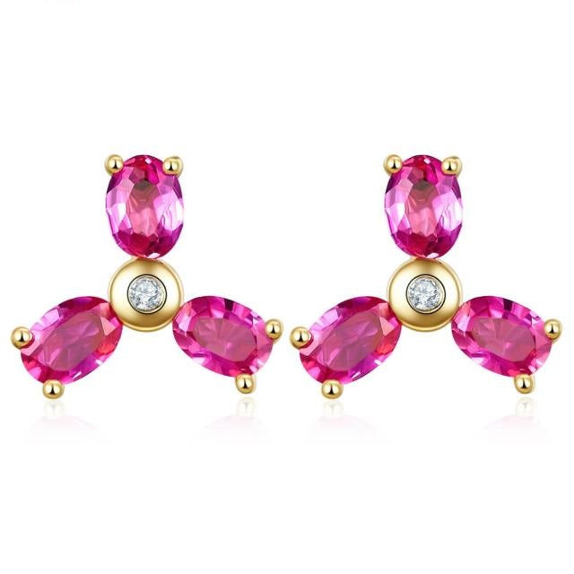 Aretes de oro amarillo de 10 quilates con diamantes y rubíes naturales