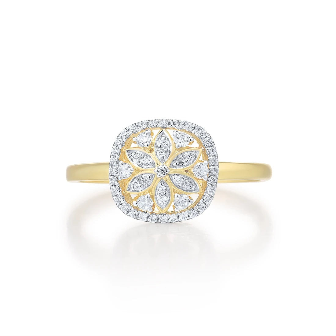 Anillo de flor de diamantes brillantes en oro amarillo 585 de 14 quilates