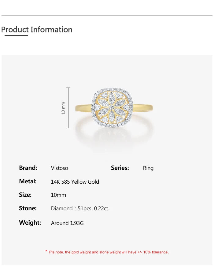 El diseño floral de este anillo simboliza la belleza y el crecimiento, lo que lo convierte en un accesorio único y significativo. Los 51 diamantes están engastados de forma que maximizan su brillo, garantizando que el anillo capture la luz con belleza en cada movimiento. La banda de oro amarillo de 14k le aporta un toque cálido y lujoso, convirtiendo este anillo en una pieza atemporal y elegante.
