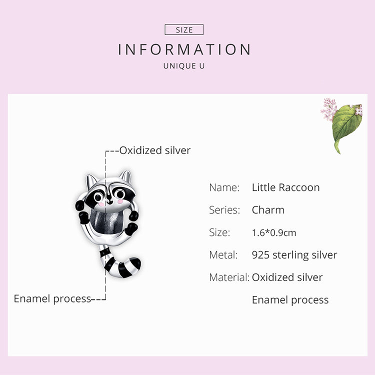 Dijes de mapache en plata de ley 925