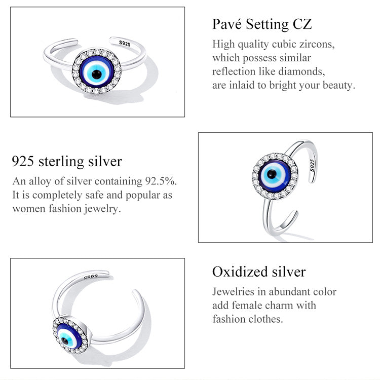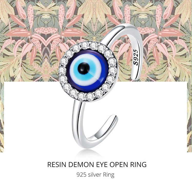 Anillo de ojo de demonio de resina ajustable en plata de ley 925