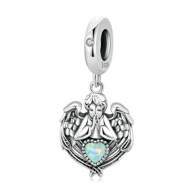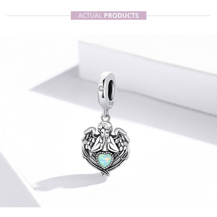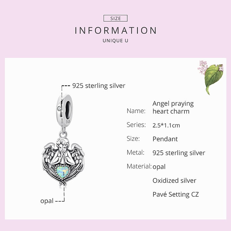 Dijes de ángel en oración con forma de corazón en plata de ley 925