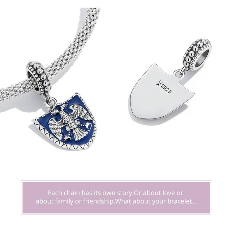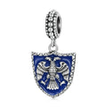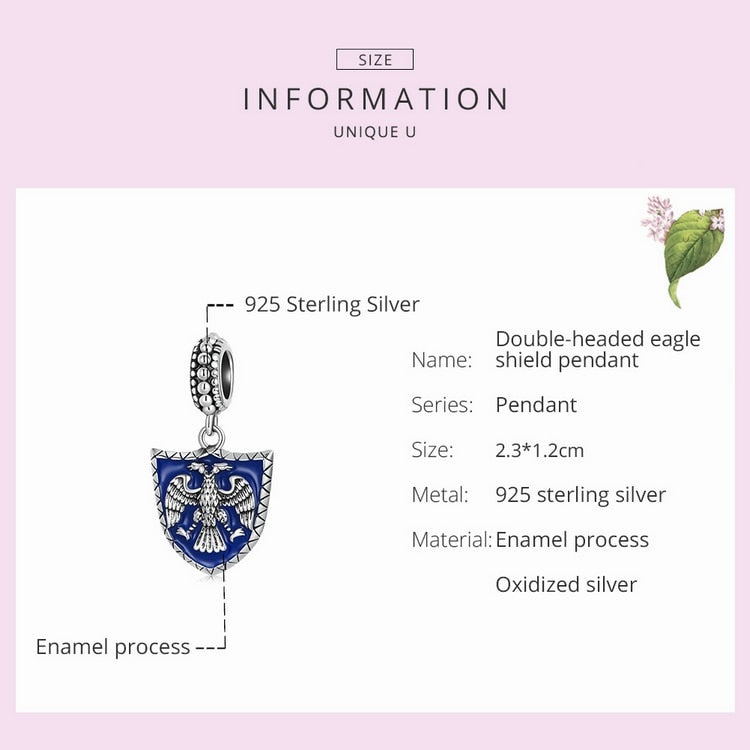Dijes de escudo de águila bicéfala azul en plata de ley 925