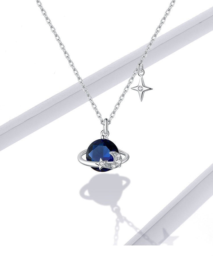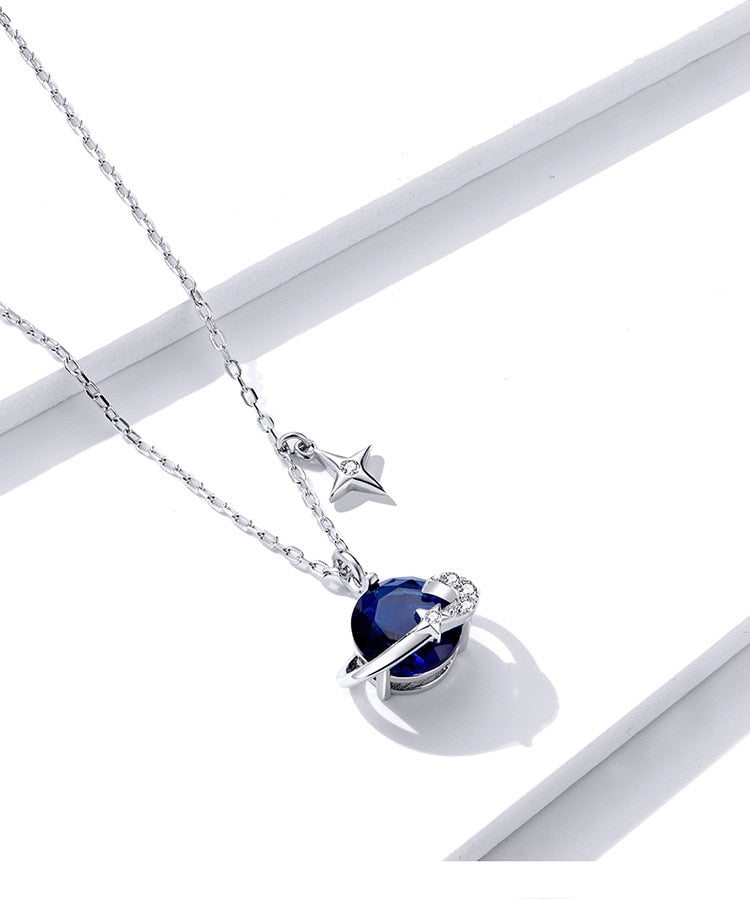 Dale un toque de elegancia cósmica a tu estilo con nuestro collar con colgante Planeta Azul de plata de ley 925. Esta impresionante pieza luce un fascinante diseño de planeta azul, elaborado en plata de ley 925 de alta calidad. Perfecto para añadir un toque celestial a cualquier look.