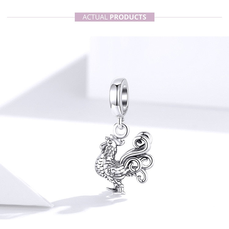 Charms de gallo valiente en plata de ley 925