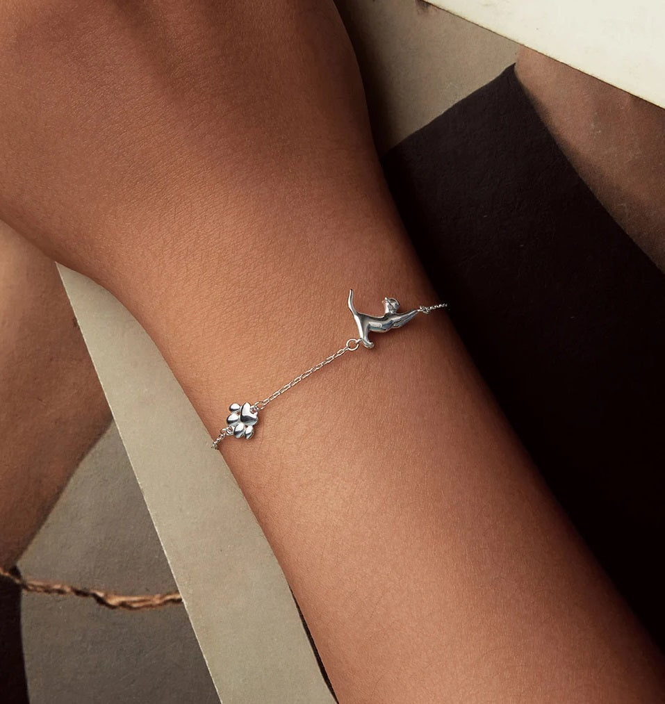 Pulsera de cadena con forma de perro y gato en plata de ley 925