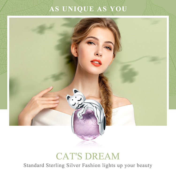 Dijes de gatito adorable de plata de ley 925