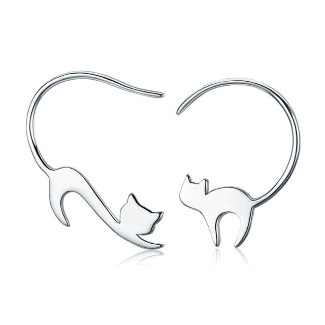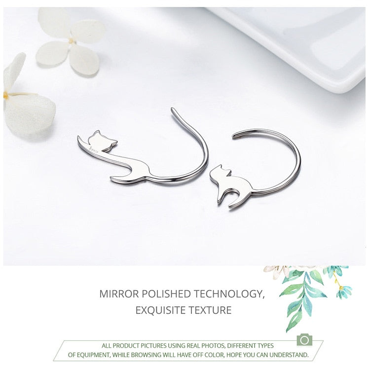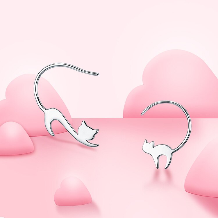 Pendientes colgantes de gato durmiendo en plata de ley 925