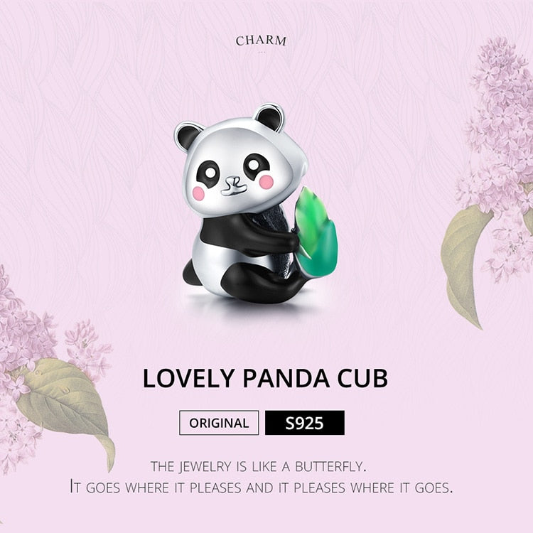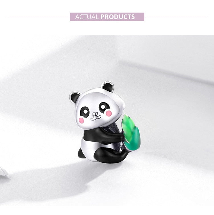 Lindo cachorro de panda en plata de ley 925 con dijes de bambú