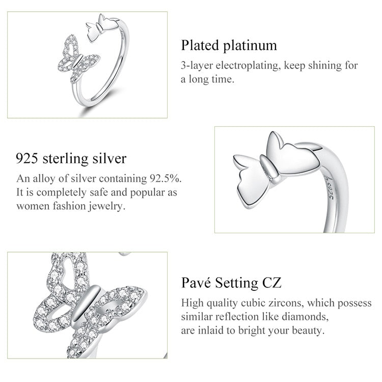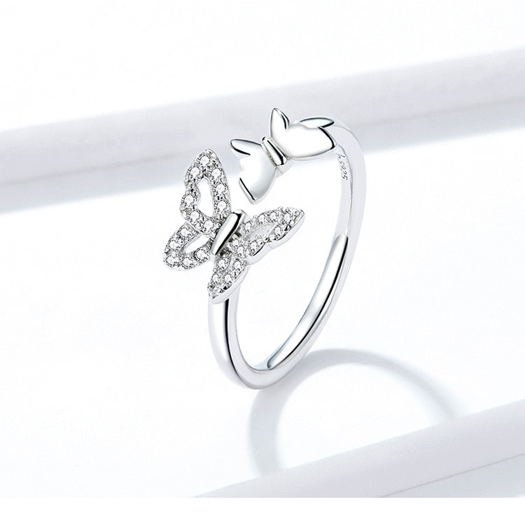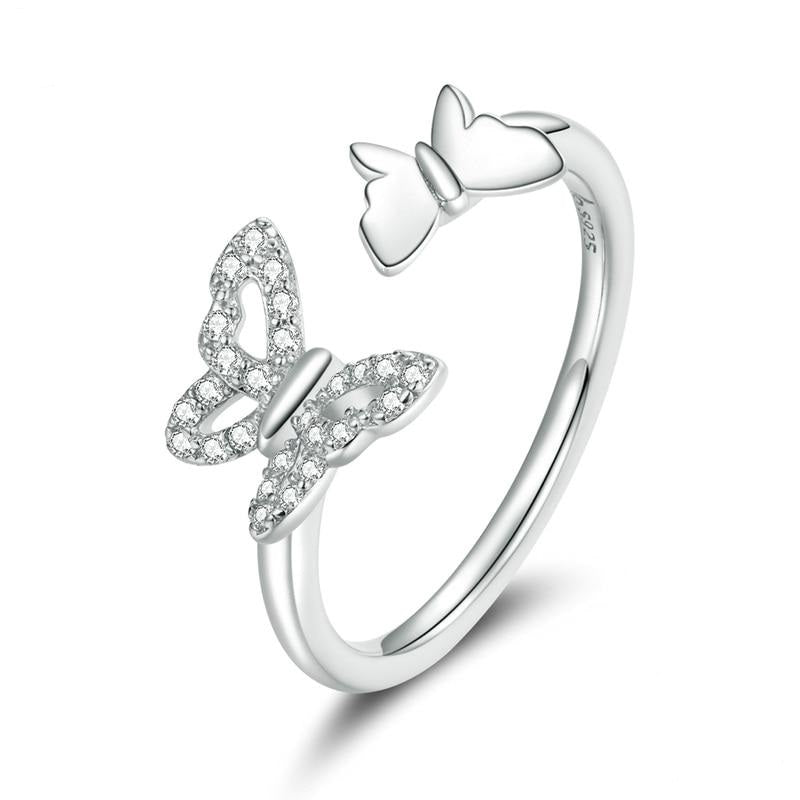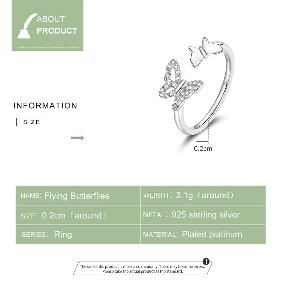 Dale un toque de fantasía a tu colección de joyas con nuestro Anillo de Mariposas Voladoras de Plata de Ley 925. Esta exquisita pieza presenta un hermoso diseño de mariposas, elaborado en plata de ley 925 de alta calidad.