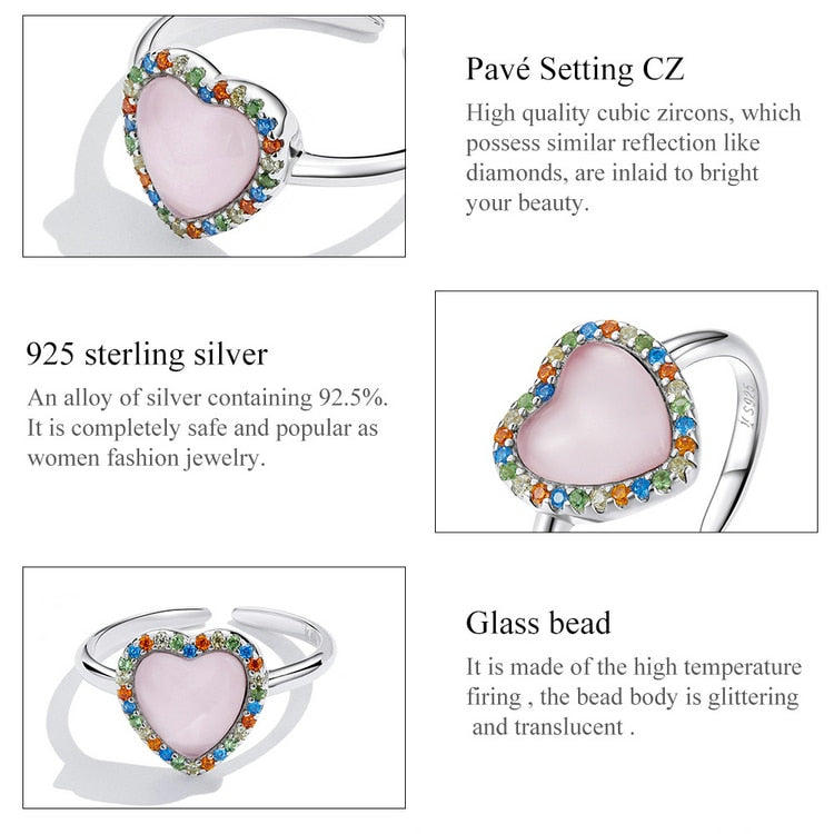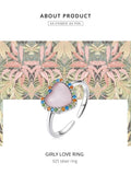 Anillo ajustable Girly Love de plata de ley 925 con incrustaciones de arcoíris