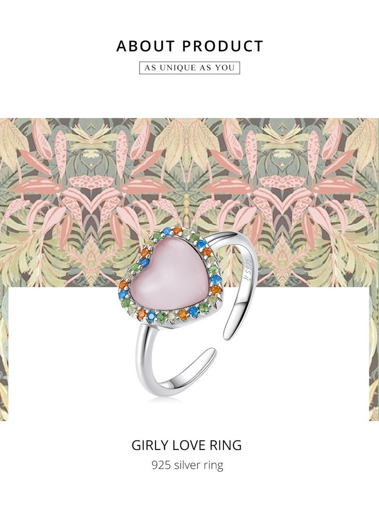 Dale un toque de fantasía y elegancia a tu colección de joyas con nuestro anillo ajustable Girly Love de plata de ley 925 con incrustaciones de circonitas arcoíris . Esta exquisita pieza presenta un delicado diseño adornado con vibrantes circonitas arcoíris, elaborado en plata de ley 925 de alta calidad.