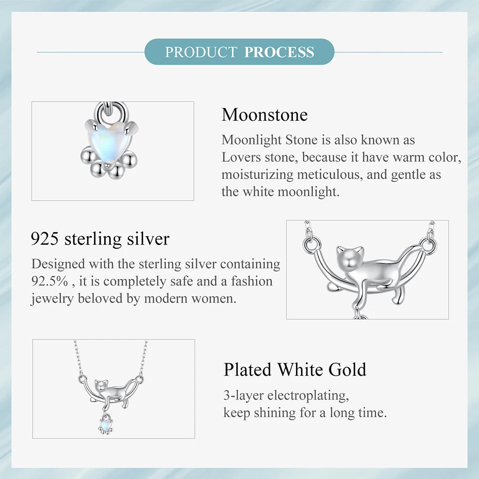 Disfruta de la combinación perfecta de elegancia y ternura con nuestro collar de gato con piedra lunar y corazón en plata de ley 925. Esta exquisita pieza está elaborada en plata de ley 925 de alta calidad y chapada en oro blanco para un acabado lujoso. El colgante luce una piedra lunar en forma de corazón con un adorable motivo de gato, que simboliza gracia y encanto.