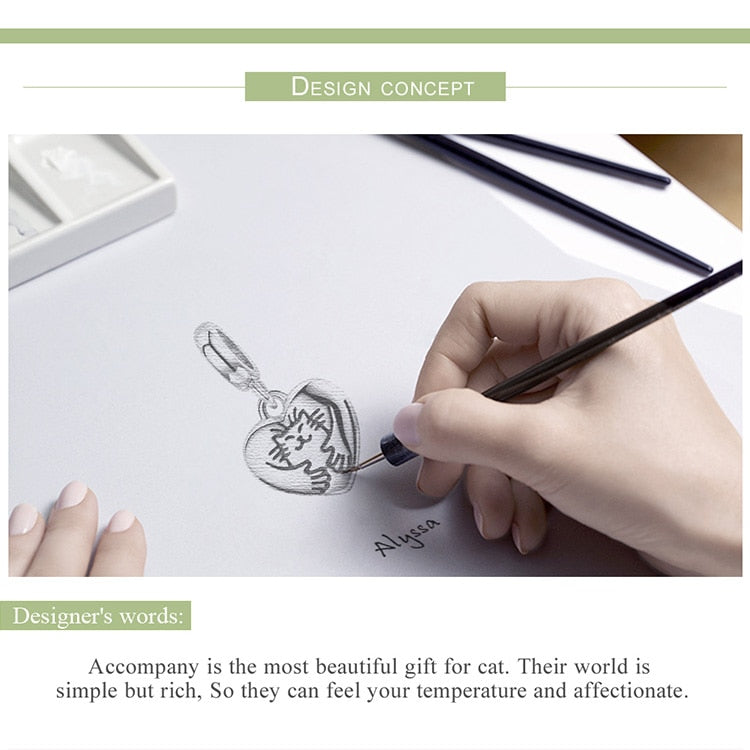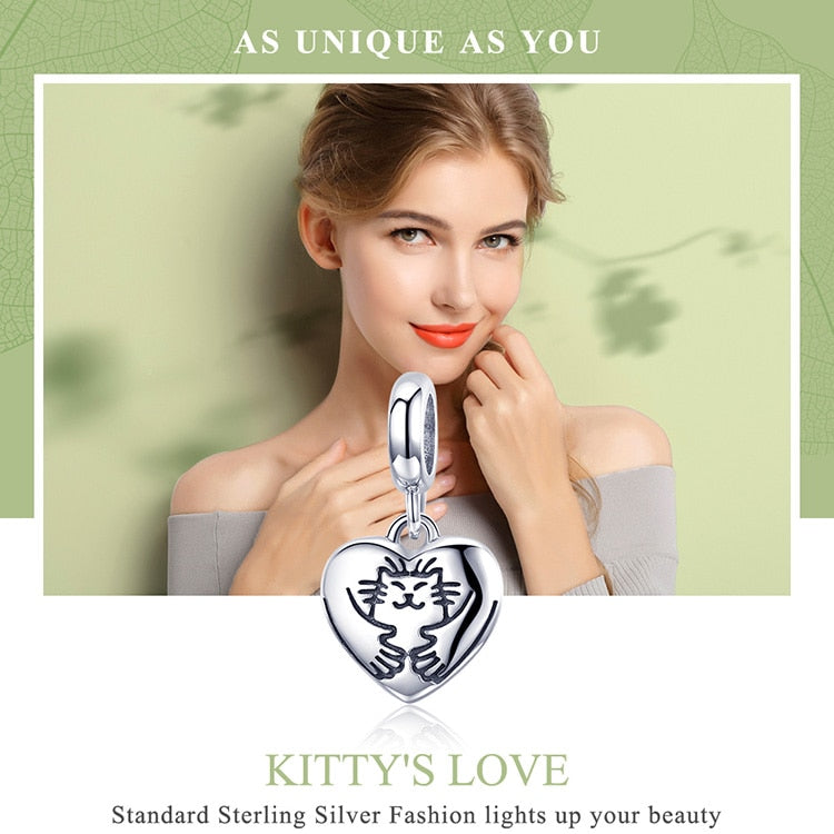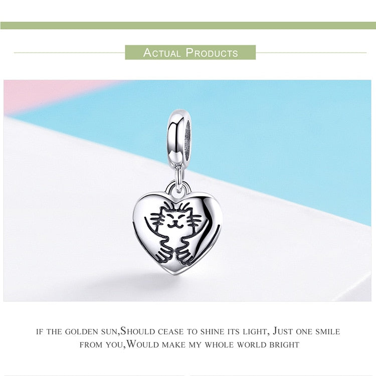 Charms de gato abrazado en forma de corazón en plata de ley 925