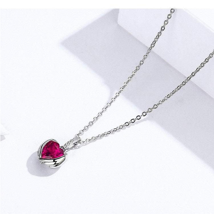 Collar con colgante de corazón y alas de guardián en plata de ley 925