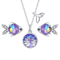 Pendientes y collar de pez tropical feliz en plata de ley 925