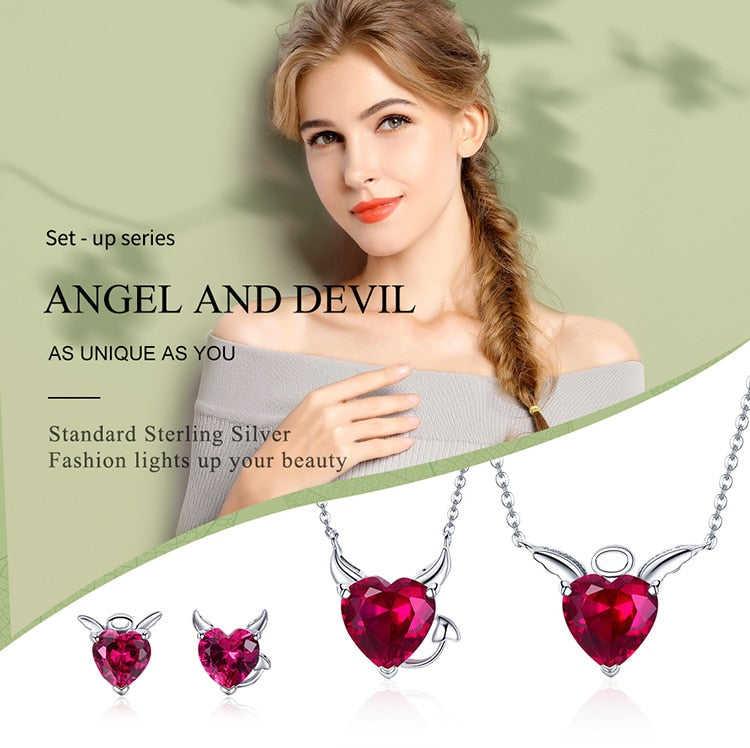 Pendientes de plata de ley 925 con forma de ángel y mal rojo