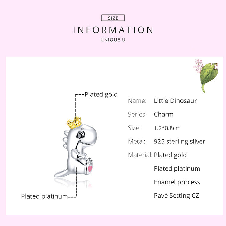 Dale un toque de elegancia y encanto a tu estilo con nuestros Charms de Dinosaurio Pequeño y Cálido en Plata de Ley 925. Esta pieza, bellamente elaborada, presenta un encantador diseño de dinosaurio, hecha en plata de ley 925 de alta calidad. Perfecta para añadir un toque de sofisticación y belleza a cualquier look.