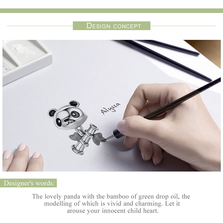 Preciosos dijes de panda de bambú en plata de ley 925