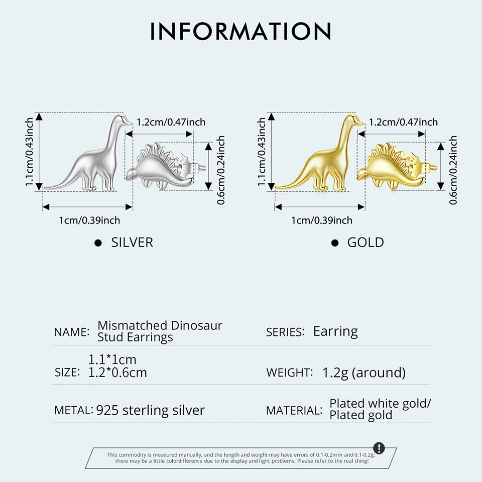 Pendientes de dinosaurio desiguales en plata de ley 925