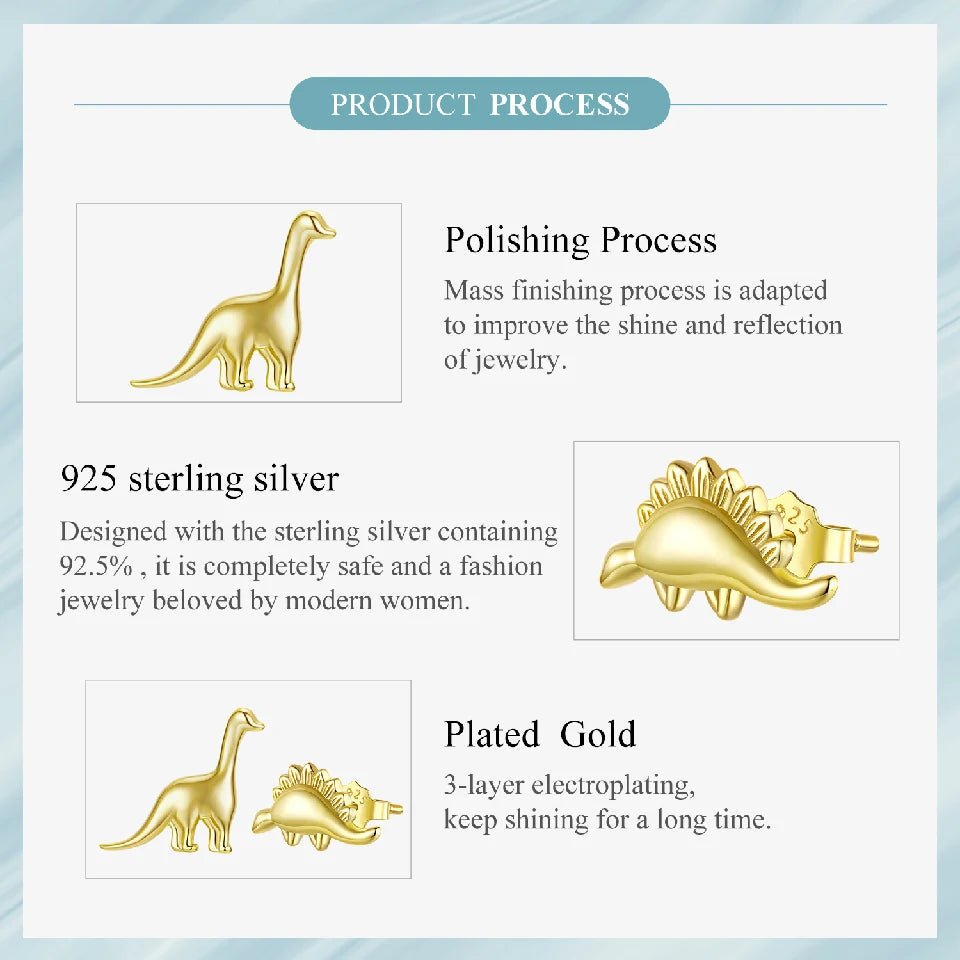 Dale un toque divertido a tu look con estos preciosos pendientes de dinosaurio de plata de ley 925. Hechos en plata de ley hipoalergénica y sin níquel, son perfectos para orejas sensibles y para el día a día. El sencillo diseño de dinosaurio le da un toque divertido sin ser demasiado atrevido, ¡ideales para todas las edades!
