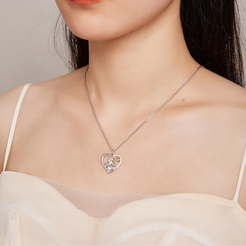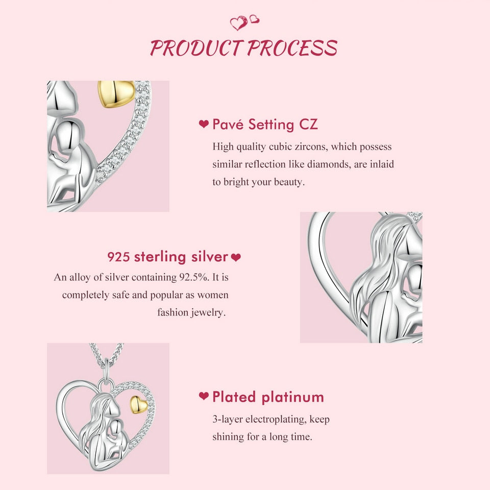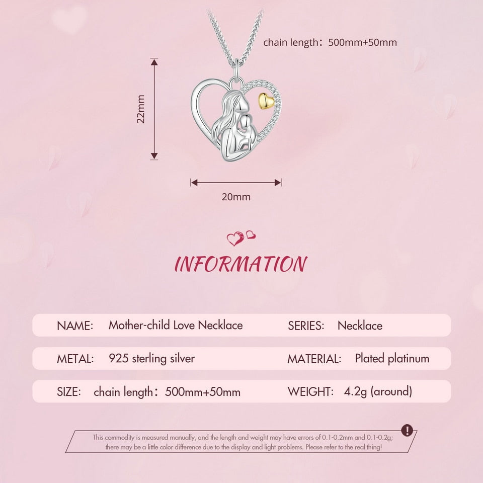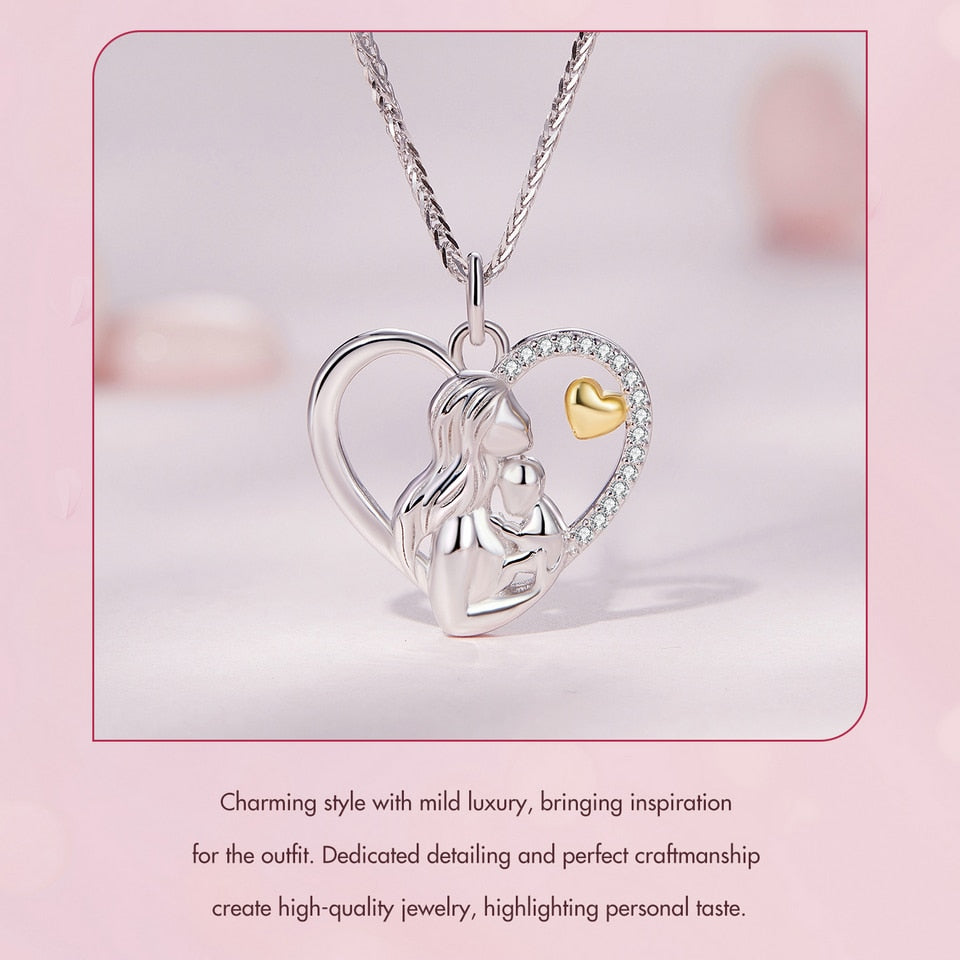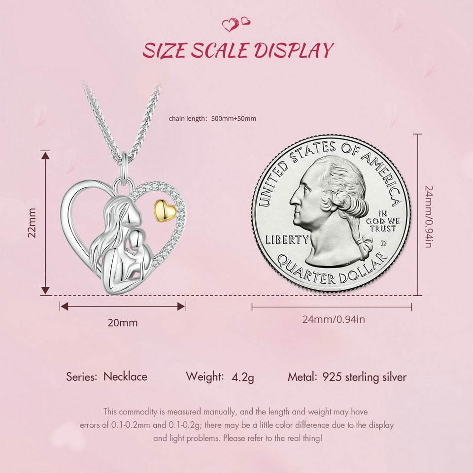 Collar con colgante de corazón de madre e hijo en plata de ley 925