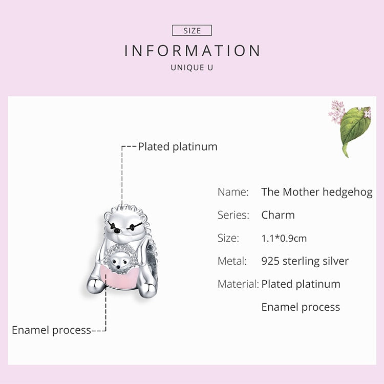 Dale un toque de elegancia y encanto a tu estilo con nuestros Charms de Madre Erizo en Plata de Ley 925. Esta hermosa pieza presenta un encantador diseño de madre erizo, elaborado en plata de ley 925 de alta calidad. Perfecto para añadir un toque de sofisticación y belleza a cualquier look.