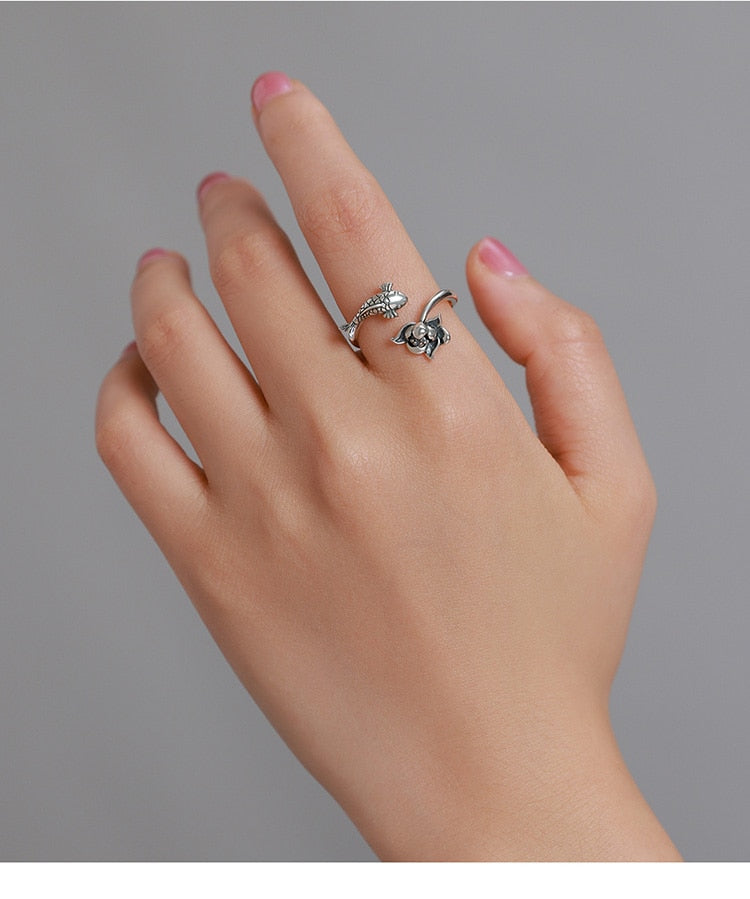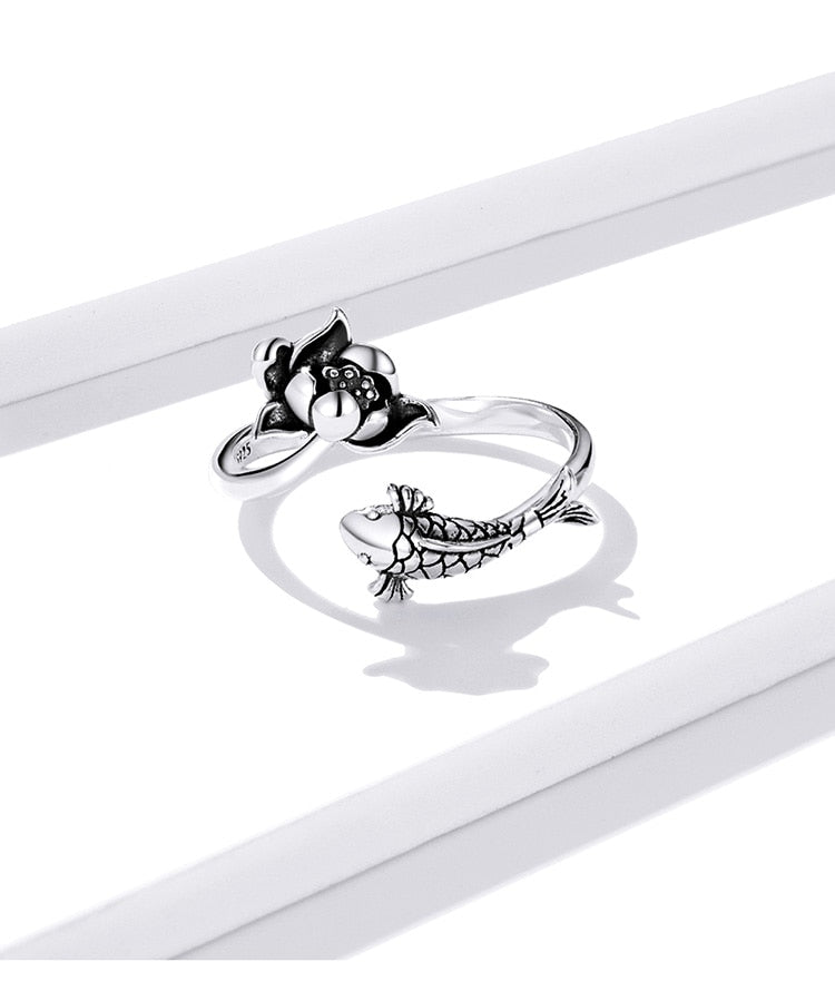 Añade un toque de serenidad a tu colección de joyas con nuestro Anillo de Loto Koi Natural en Plata de Ley 925. Esta exquisita pieza luce un hermoso diseño de pez koi y loto, elaborado en plata de ley 925 de alta calidad, que simboliza la paz y la belleza.