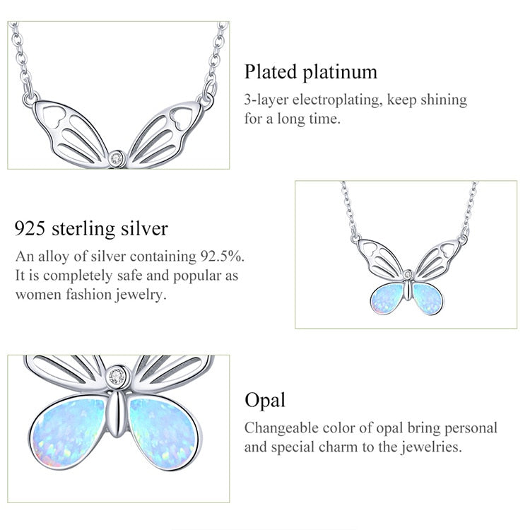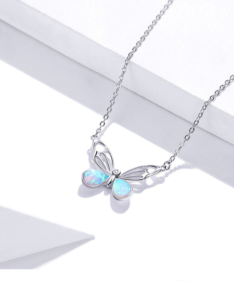Collar de mariposa auténtico con ópalo en plata de ley 925