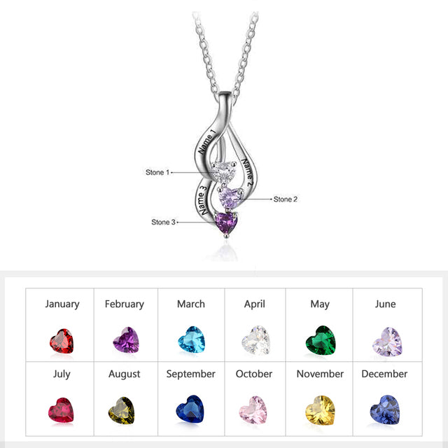 El colgante está adornado con tres o cuatro piedras de nacimiento personalizadas, cada una representando a una persona especial en tu vida. Para darle un toque personal, puedes grabar nombres o palabras significativas en el colgante, convirtiéndolo en un recuerdo verdaderamente único.
