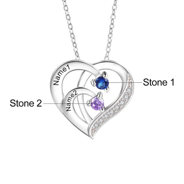 Collar de corazón con nombre familiar personalizado en plata de ley 925